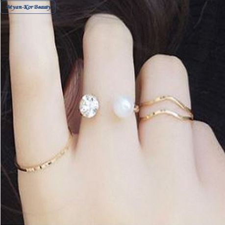 Pearl Rhinestone Open Ring and Simple Ring Set ( 4 pcs ) / Adjustable Ring / Korea Ring