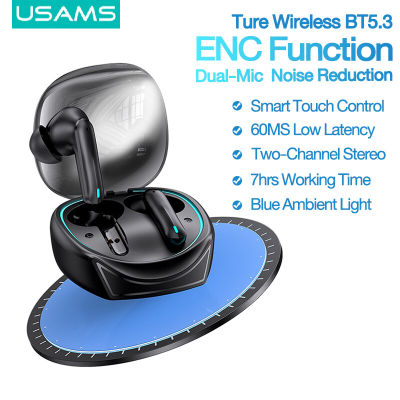 (Preorder) USAMS ENC Ture TWS Wireless Bluetooth 5.3 Earphones Dual-Mic Noise Reduction IPX6 Waterproof 60MS Low Latency for Mobile Games/Online Class Meeting Samrt Headset Touch Control